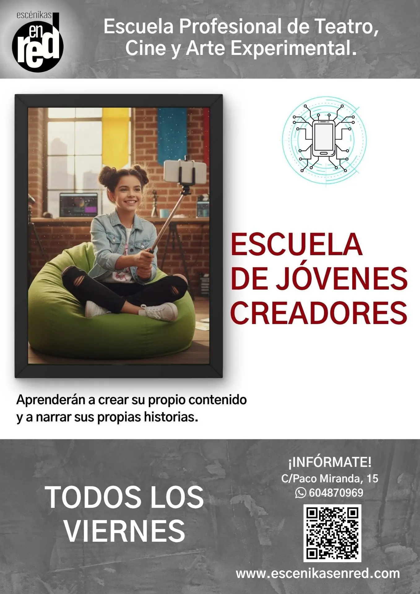 A través de la cooperativa Escénicas En Red estamos construyendo un nuevo concepto de escuela creativa, un espacio donde los jóvenes no solo aprenden, sino que descubren su talento, su voz y su manera de transformar el mundo.